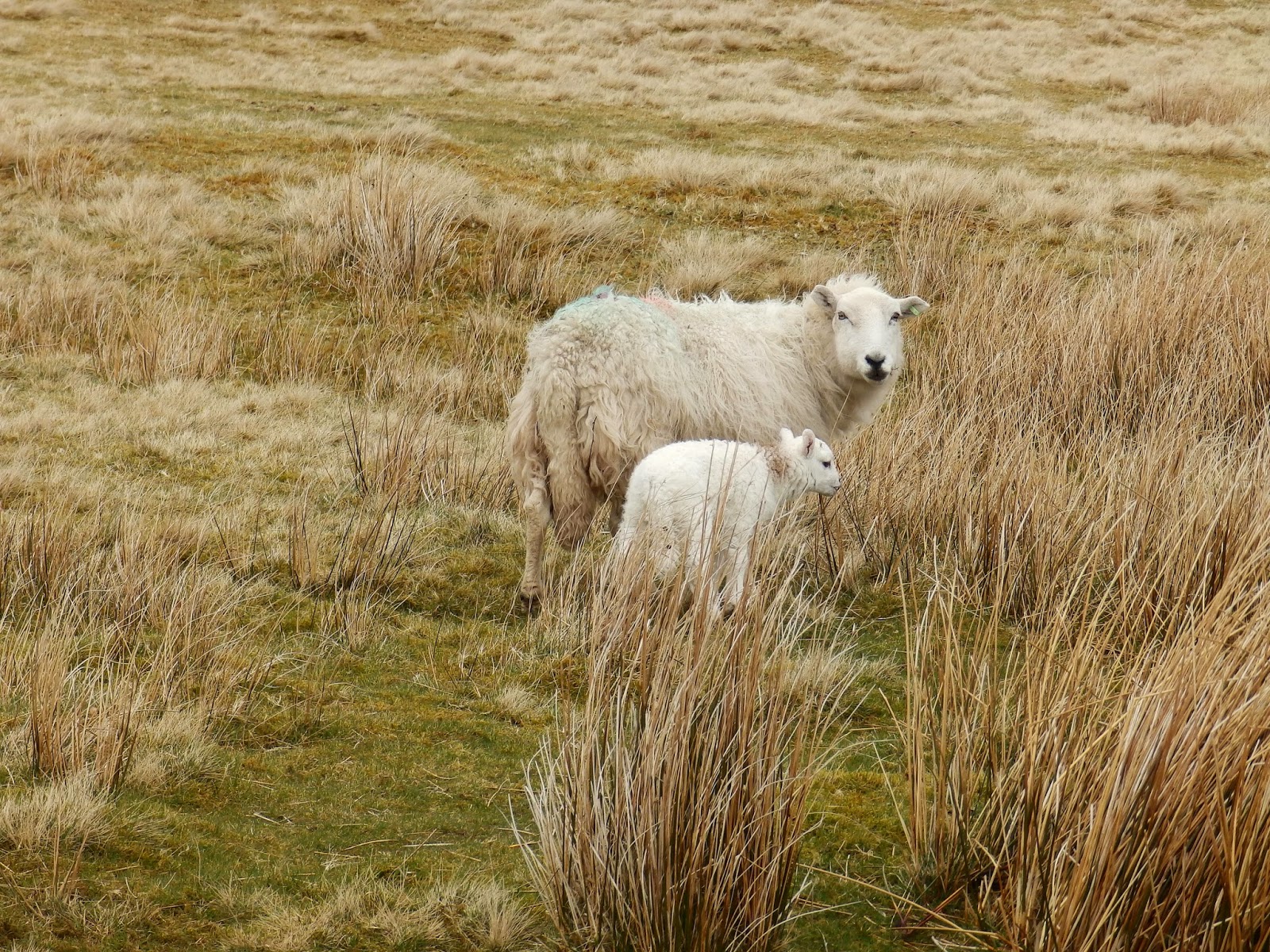 It's raining, so the trip back over the top is pretty bleak' Herself drops me at the main road and I walk the dogs the mile or so back to site.