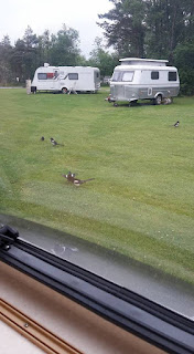 We are also amused by a young family next door who have parents staying in a van opposite. Grandad has cooked tea on his Cadac outside his spanking new Unicorn. The Grand kids are obviously not allowed in the brand new van and food is carried across our paddock for them all to squeeze into the families much smaller and older Ranger.