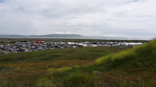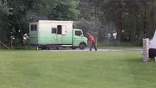 The sun goes in behind some rather thick clouds and it's threatening to rain. We spend the rest of the evening relaxing in the van and people watching. Despite it being 7pm and the sun has decided not to come out and play anymore today, the ginger family on the pitch opposite us are slapping on the factor 50!