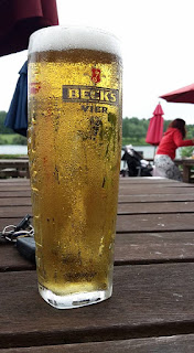 Well not quite, we stopped at the Sandpiper in Pwll for a pint in the beer garden (once we'd found the dog friendly way in, which involved leaving the car park, finding a path and taking a walk along the lake side until the steps to the beer garden comes into view).
