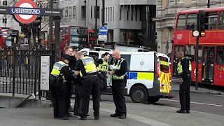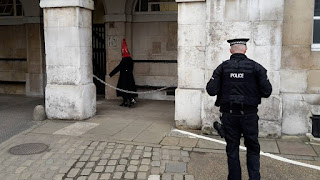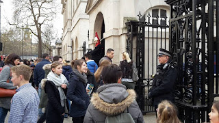Out onto Whitehsall into the throngs of tourists, again every other one waving a bloody selfie stick in the air. More armed rozzers guarding more guards.