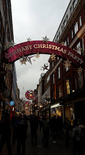 We weave our way back through the streets to Regent St before turning right to pick up Carnaby St, pausing briefly for a couple of glasses of mulled cider on the way.