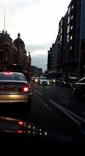 Herself is starting to twitch in her seat as the traffic clogs up Cromwell Rd as we pass the queue for the sale at B&M's Knightbridge store, then through the tunnel and past The Ritz on Picadilly. Butt cheeks are clenched as we drive through Picadilly Circus and up Shaftsbury Ave.
