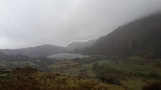 In all it was a 4 mile walk, out and back, and I'd estimate that 1 1/2 of that was a clamber over rocks. Before returning to the car we take an outside table at the Saracen's Head for a well earned pint with a view of the surrounding mountains.