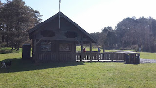 It's a lovely evening, so it is decided that we shall take the dogs for a walk in the country park before sorting out our evening meal. I promise Herself that if we do a loop of about 2 miles we can call at the Sidan Lounge for a pint before returning to the van.