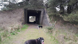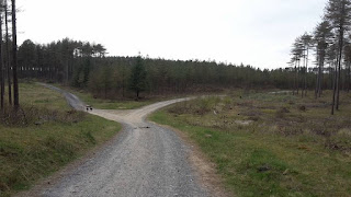 Leaving the site I feel like a soldier on selection with the weight on my back, but all is forgotten as we meander through the tracks that criss-cross the forestry down here. All too soon we are lost. I try to bluff my way out of it but Herself sees straight through it. We haven't a scooby where we are.