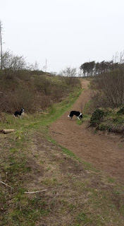 Or Derek has come up trumps today and the sun is high in the clear blue skies. In shorts for the first time this year I set off into the forestry with the dogs - women and children running and hiding from my translucent legs!