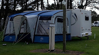 We wake at 7.30am and note that we can no longer hear rain hitting the roof, what's more a peak our of the blinds reveals that the awning has dried out over night, but with rather ominous looking skies it's not going to stay dry for that much longer.