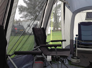 I am on the pitch and set up in very little time before setting about another BH tradition. Mr Shag has once again manufactured it is that he is working today, and will be working late too. Even though he brought Mrs Shag down last night, he appears to have just dropped her off before darting home quickly to tune into Babestation in an empty house, and omitted to put up their awning.