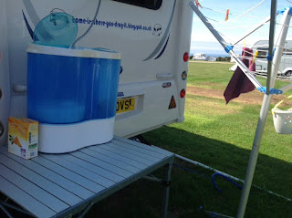 I'm just settling down and Herself says "Didn't you need to do some washing today?" She's right. as I'm fast running out of clean shreddies. so up I get and drag out our camping twin tub. feeding hot water via the shower hose through the window for the task.