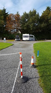 We pull up at Highbridge Caravans and there's no evidence of the recent fire. Herself starts wandering around the new caravans on display. I join her until she starts fancying some with a price ticket of £29K.