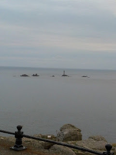 We find an empty table outside the hotel bar with a view over the firework firing area, text the kids to say where we are and settle down to enjoy a few pints looking out towards Longships and the Isles of Scilly beyond.