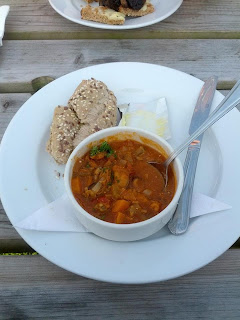 We are both up, washed, dressed and out of the door by 10am and make the short journey to the Farmer's market in Sennen Village. Trip Adviser waxes lyrical about it, so it was with some excitement that we pulled up.