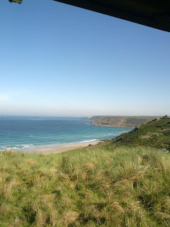 We cannot stay in tonight, nor can we walk along the front in Sennen. It's Magic in the Skies tonight and we have to escape for ours and the dog's sanity. Tali even had a moment earlier when an old VW camper backfired as it entered our field!