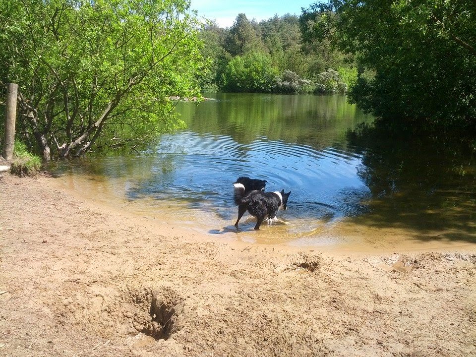We stop at the lake for the dogs to have a swim. Well. Cerys swims while Tali goes no deeper than his ankles - he's scared of water - no matter though because I pick him up and throw him into the deep to cool him off.
