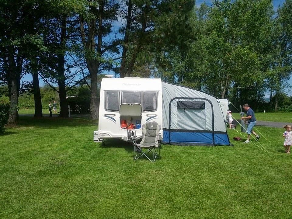 With that done, and a sparkly clean van I'm pulling up outside Herself's work just as she's coming out of the door, and we make the short trip to Pembrey. Mr Tatasports is already on site so after checking in we play hide and seek on the site roads trying to find him. I spy his awning through the trees and think Oh dear!
