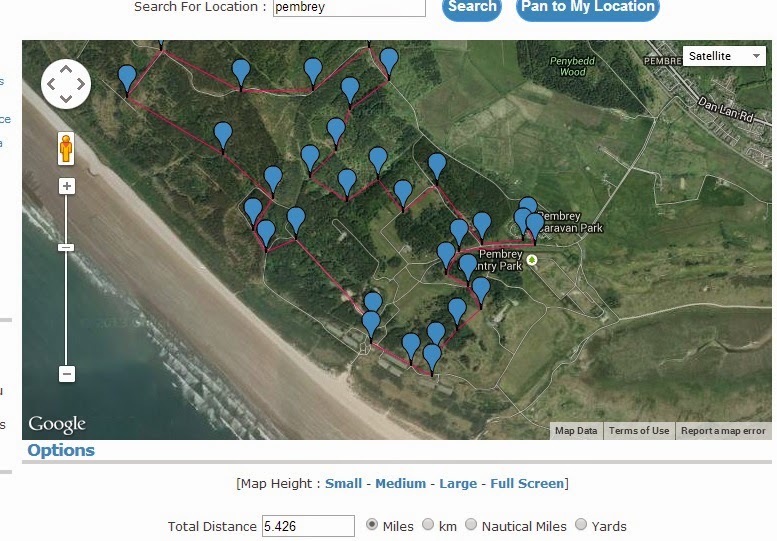 We arrive back on site and look around in disappointment at the lack of a welcoming party. We collapse into our chairs in a heap, unable to move for an hour. A look at my smart phone app reveals that we've cover approx 5 1/2 miles in our travels. I don't think I've walked that far since ......... well. since ever! The map below how we zigzagged our way through the forestry.