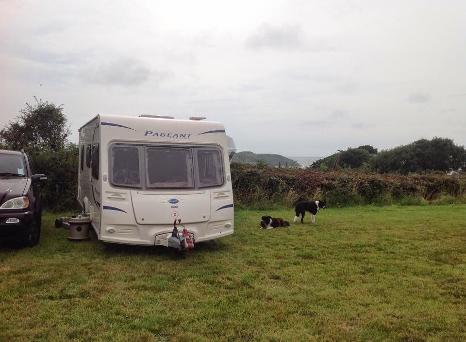 The site only has 5 pitches, and they are massive. I'd been told earlier that we were on pitch 3, so without a welcoming committee we go about setting up. herself is worried about paying, but I tell her that "it's the Gower, and we are on a site owned by a Gower farmer, they;'ll be here soon enough for their money!"