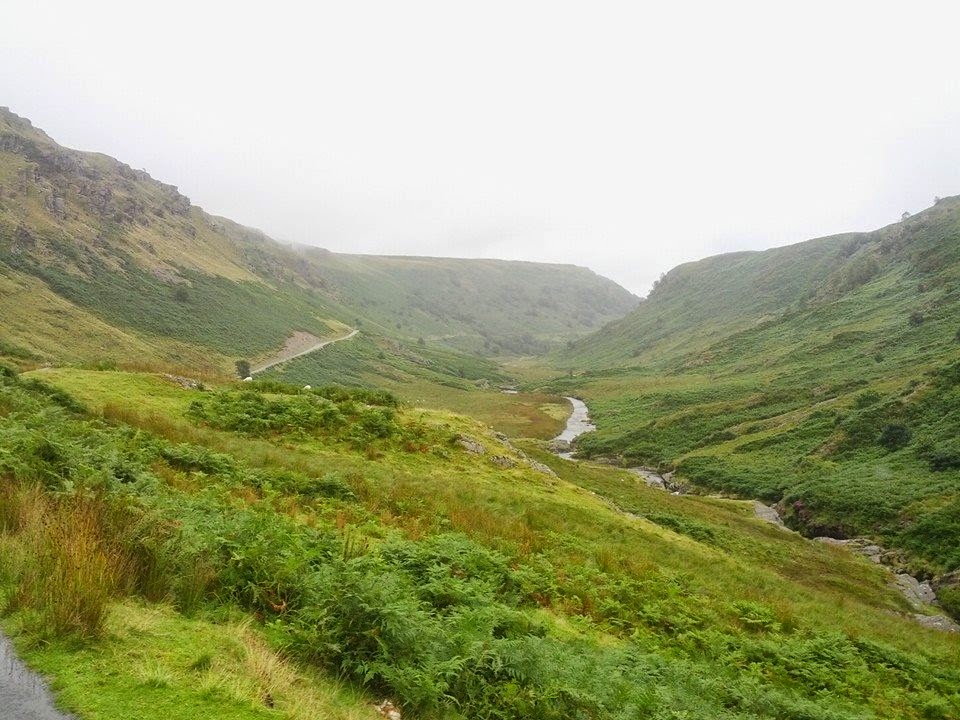 Stopping for lunch in a remote spot we sat on Miranda's tailgate taking in the view while the dogs romped through the long grass. The wind was howling up the valley towards us driving the drizzle straight into our faces. Herself was not enjoying. She was cold, and getting colder by the second. The wind picks up and catches all our litter, blowing it onto the soggy bog adjacent to out parking spot. I chase after it and sink to my ankles in the smelly subsoil, falling flat on my face in a fruitless effort to catch a crisp packet.