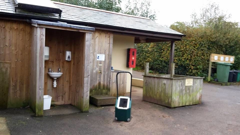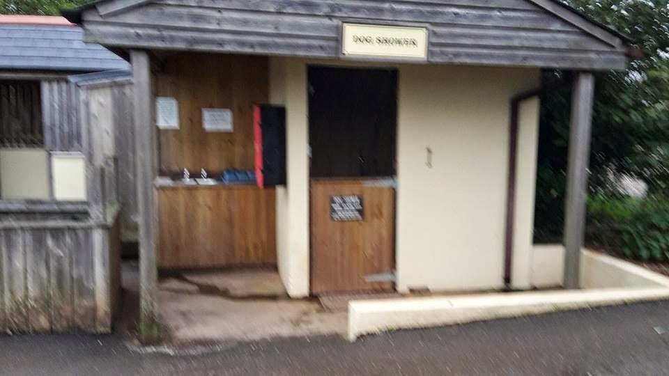 I'm up at 8am and out with the dogs, leaving Herself in bed. I let the dogs have a run and a roll about in the mud for a while before leading them to head back up the hill. I have a surprise for them though. This site has its own shower block for dogs, and my two smelly ones are about to get the good news from a shower head.