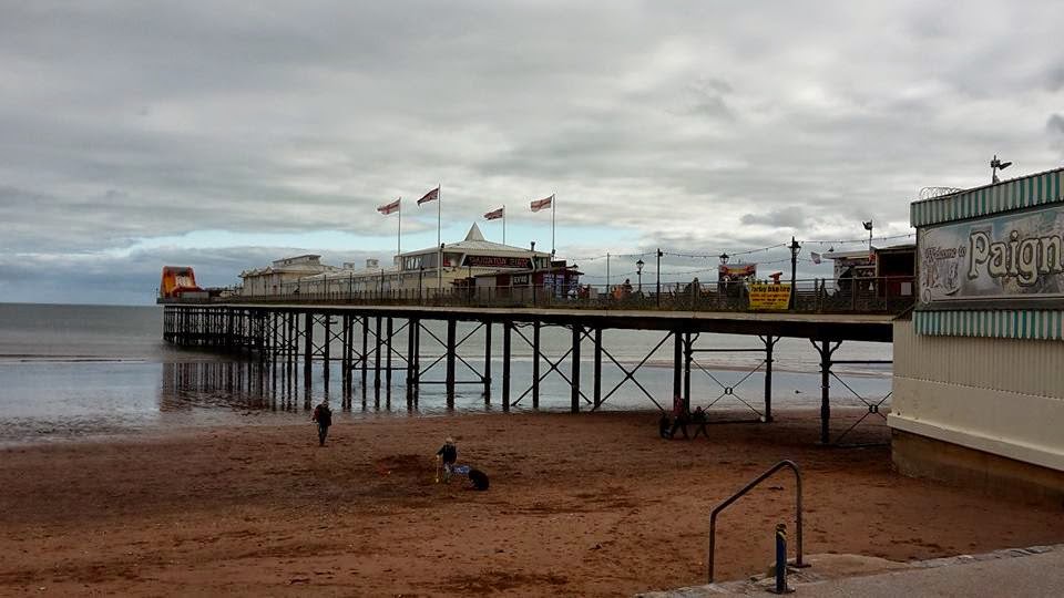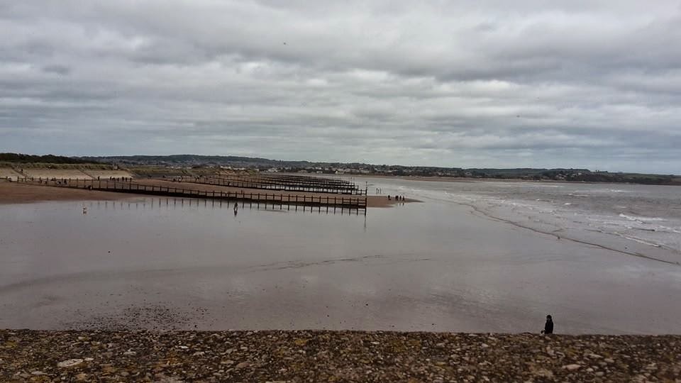 Time to head for the coast and we take the road down through Starcross towards Dawlish Warren. We pay a King's ransom to park and walk past the amusements and go karts towards the sea front. The walk was only a few hundred meters, but was not incident free. The footpath passes under a bridge. The bridge carries the main railway line deeper into the west Country. We're half way through the underpass when a 125 passes over us at full tilt. What a noise. I had my hearing aid in, so the noise was amplified to a point where I thought my ear would start bleeding. The whole structure is shaking and Cerys just flops onto her belly in the middle of the road and shakes uncontrollably. Tali get spooked and makes a break for it, pulling Herself's arm out at the shoulder socket causing Herself to shreak out in pain. All the while the normal people are continuing as if nothing has happened, but are giving the strange Welsh people a very wide berth.