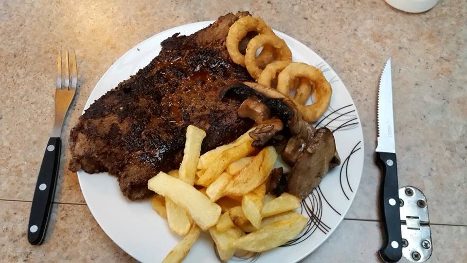 I get into JFO mode and we feast on huge rump steaks for tea.