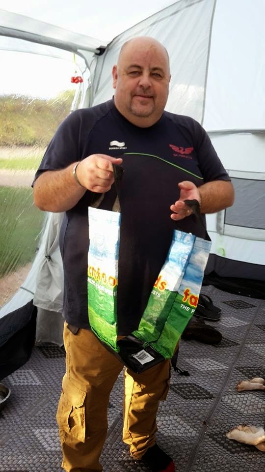Pulling onto site, first impressions are good. Payment is refused until after we are settled in and we are escorted to our pitch. We've just got the awning up and my hands are recovering from the battering they have just taken pegging out, when a conversation between Herself and I went something like this. (Bear in mind that when we are going away, Herself sorts the food and clothes and it is my responsibility to ensure we have all the kit we need.)