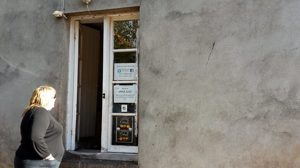 Back in the car we head for Hunts Farm Cider near Paignton. It's a little out of the way, and when we arrive not really what we expected. Just a driveway, and a window through which you are served. We taste a few before settling on the dry, and watch as he decants it direct from the vatt into a poly container.