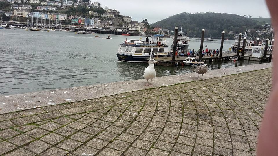 Leaving Herself in bed, I'm down the field with the dogs by 8.30am. With breakfast out of the way we are on the road to Totnes by 10.45 and find a place to park with remarkable ease.