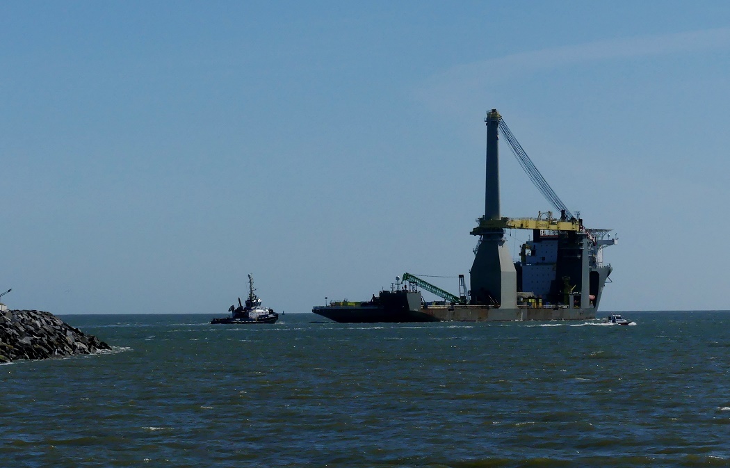 Interesting walk down the beach this morning, firstly watched a St Bernard (?) isolating in the yacht pond then watched the heavy lift ship Bokolift 1 prepare and leave our outer harbour. Amazing ship of 48000 DWT and the crane can lift 1200 tons. She has just delivered 2 x gas platform topside of out 400 tons each. These topsides will be thoroughly cleaned and broken up for recycling. They have probably been pumping and processing gas for 50+ years