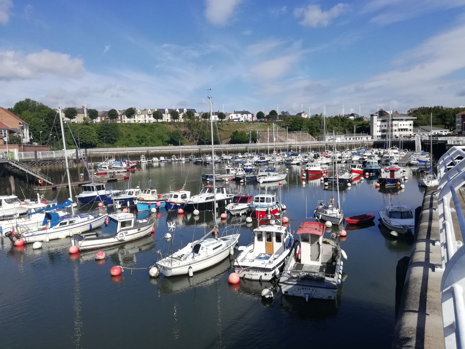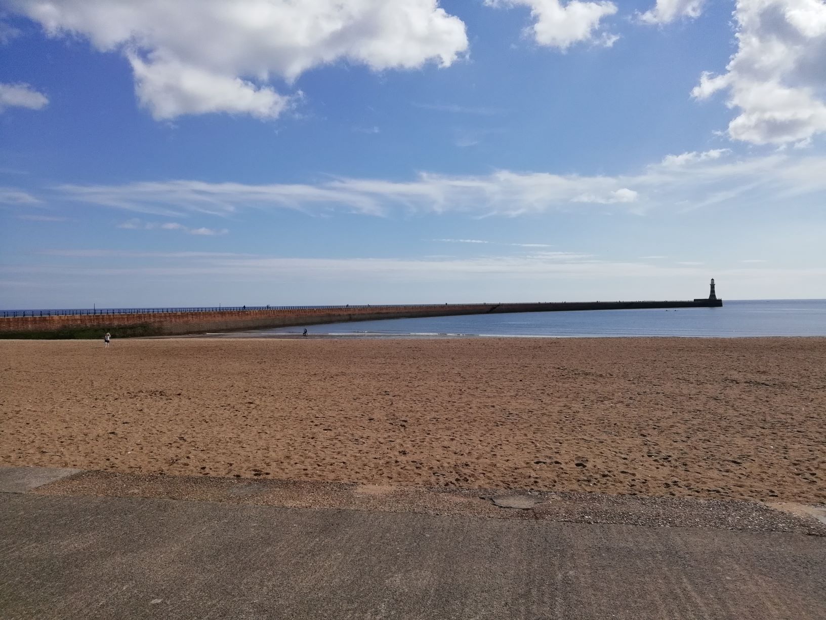 Well summer has returned today and I took full advantage, left the house at 7 in warm sunshine and was having coffee and a bacon buttee before nine at Roker, then up the coast to South Shields where I entered a blue box...
