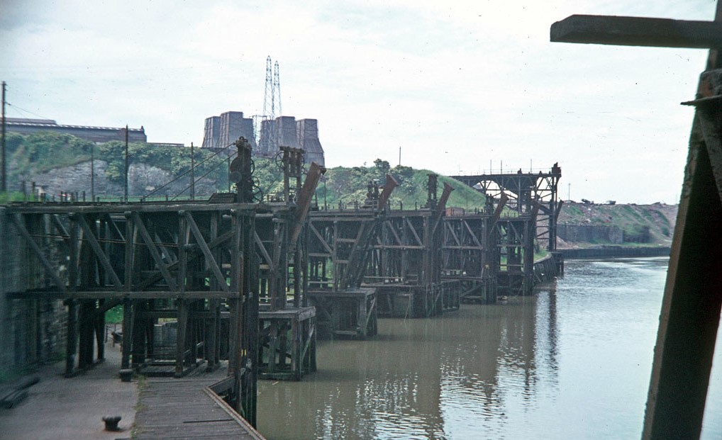 It is, or was, one of several coal staithes where coal from the local collieries would be tipped directly down into the ships below. There would have been extended wooden platforms with rails to bring wagons right to the edge above the ships as shown in the 'past' picture taken in 1968.