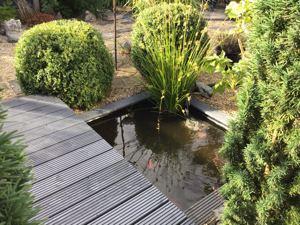 We’ve had a busy day today. Replacing all the pond plants. The decking has been replaced, cleaned and repainted. It all looks so good. The frogs jumped out at us and the fish decided to hide. Time to enjoy all the hard work with a glass of fizz.