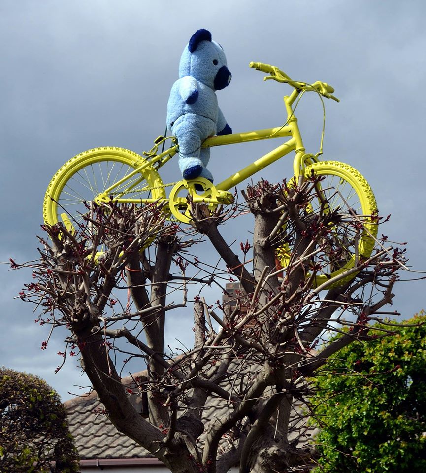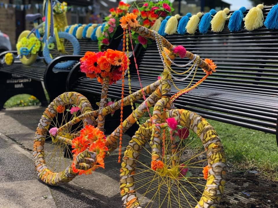 There are some good bike charities/recycling in Yorkshire, but alternative festive uses have become popular because of all the bike racing. I have seen some wonderful craft uses as well for bike bits! There are competitions now allied to the TdeY for best village, best town, best land art......