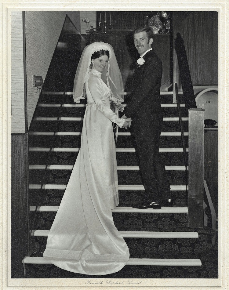 Thank you for your good wishes. It's only the second Golden Wedding at Strickley in recentish years. In 1914 my husband's Great Grandparents celebrated 50 years with a photo on the steps, with some of their family (they had 11 children and 35 grandchildren). We tried to recreate it with our small family (two branches are socially distanced in the Midlands) and an uncooperative dog.
