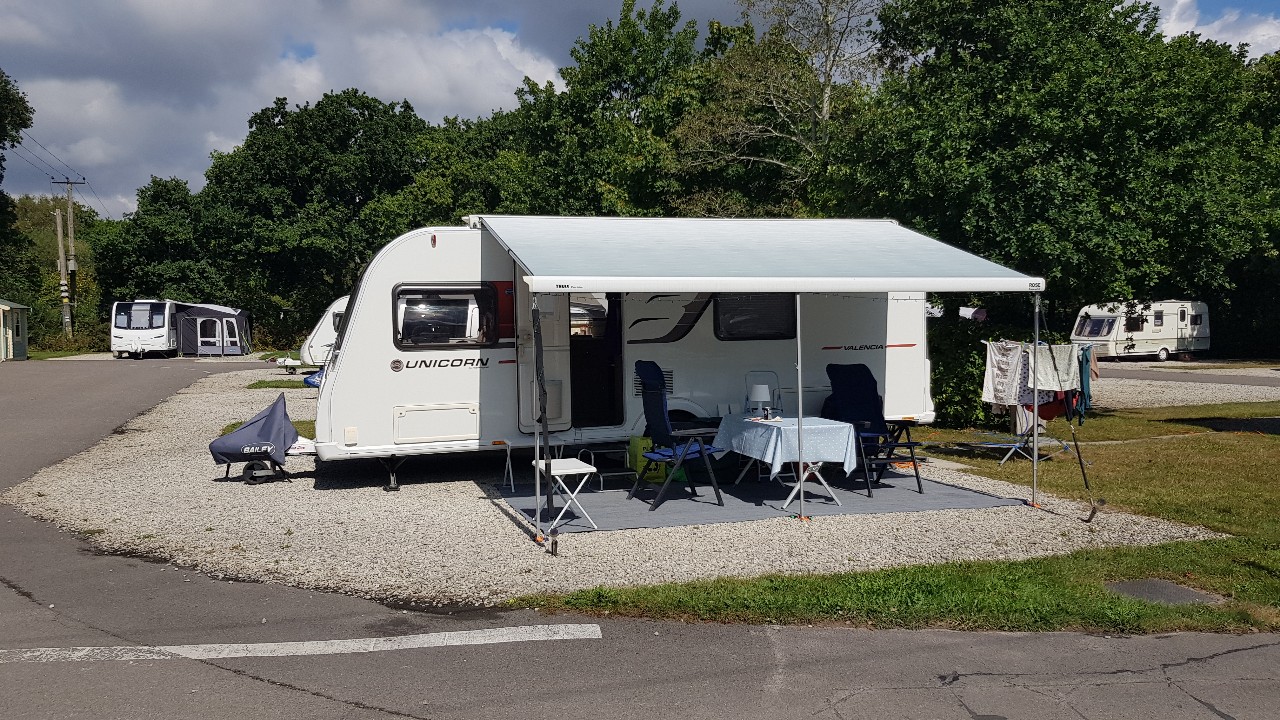 Sitting outside the caravan at the moment at Hunter's Moon CAMC site. I was beginning to think we might have made a mistake booking a Serviced pitch. The only one left was pitch 1.... right by the barrier! I thought we would be bothered by being on a really 'busy pitch'. In reality, everyone has stopped to say hello.... and the sun has come out.... Off out shopping in a moment, and we might even check out Studland beach.. 👍👍