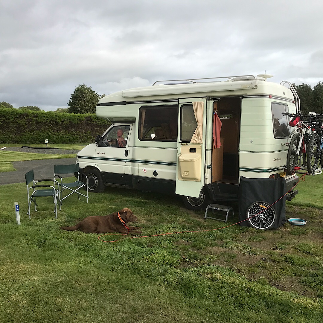 DD, who was due to accompany us to our first site for a few days, is hoping Callum will forget that he was supposed to be coming to stay in the caravan with us!
