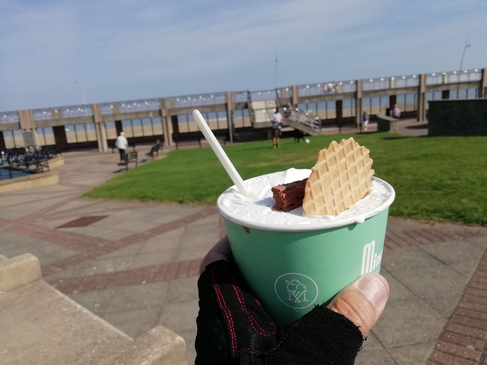 A fantastic ride out to St Mary's island, which is now open for anyone at the Old Hartley site, up to South Shields, under the Tyne, and up through Whitley bay, back using the ferry and down the coast to Sunderland. It was lovely warm sunshine again. Even made a new friend, although he may have been after my ice cream.