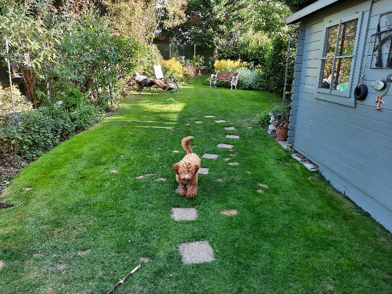 Puppy is growing and impersonating a highland cow currently. Hopefully photo attached. She should have had her first trim last Monday but a family emergency for the groomer means its been put back to next Thursday. I'll do an after photo. Had to order a larger part for her 3 part (perfect fit) harness today as the girth is only just allowing 3 fingers under. She's great fun but has been a bit hard work but great distraction too! Can't believe shes 25 weeks old today.