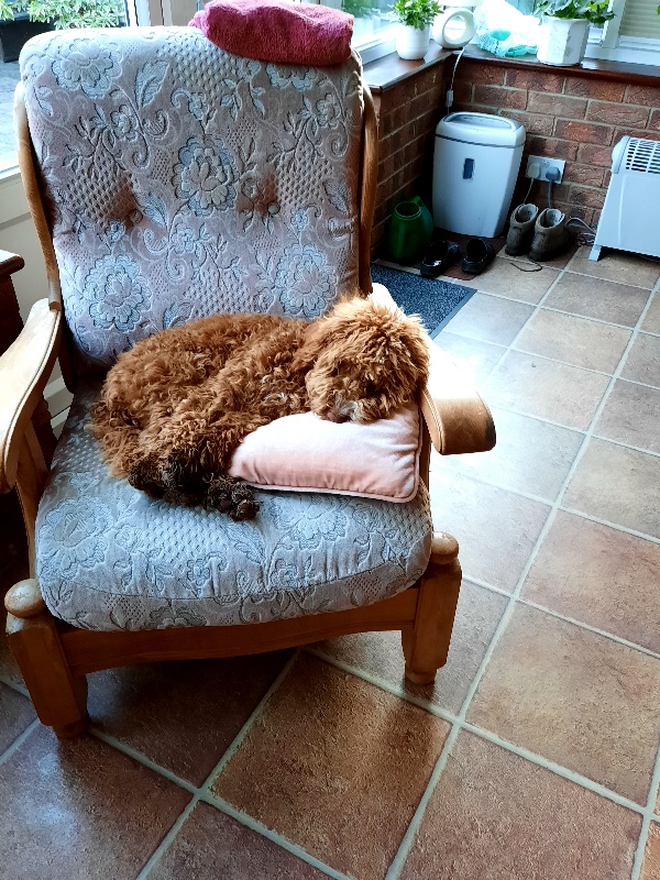 After a good 2 hour run on the local.estate, including 3 separate runs with other puppies - even had trouble with keeping up with the 3rd 🤣, plus a couple of assisting on tidying the garden. Dad settle on the conservatory sofa for a post lunch snooze - allowed as he's been building up this week, mum goes for a shower 🚿. I make myself comfy.........