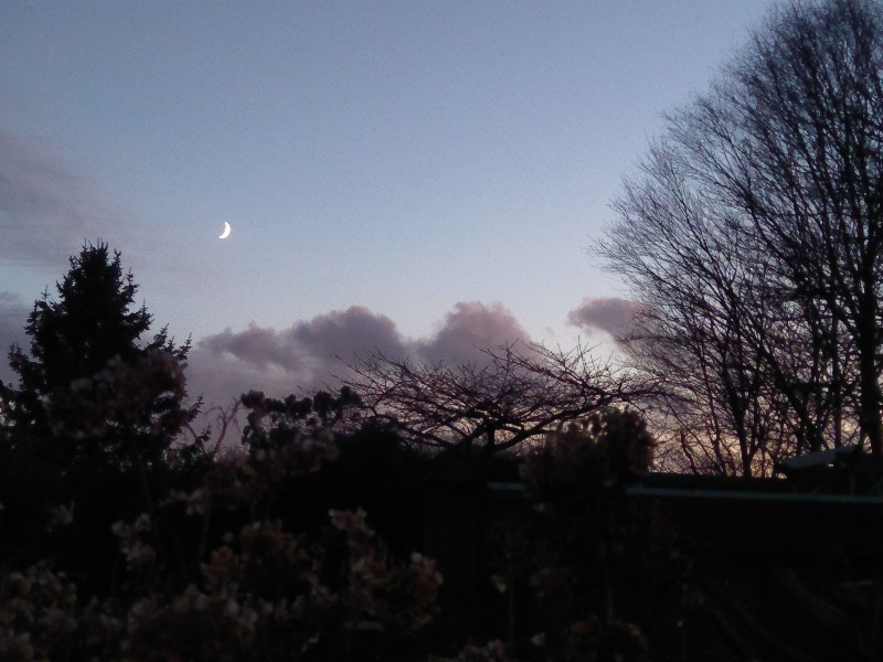 Hope we get some sunshine tomorrow, at least that's something cheerful! There was a beautiful crescent moon in the south tonight, I tried to take a photo!