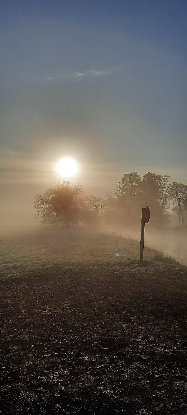 Magical morning walk today. Despite the frost it was very mucky underfoot. The mist was only over the river and the church spire was just peeking above hopefully enlarging the 1st photo will allow you a glimpse.