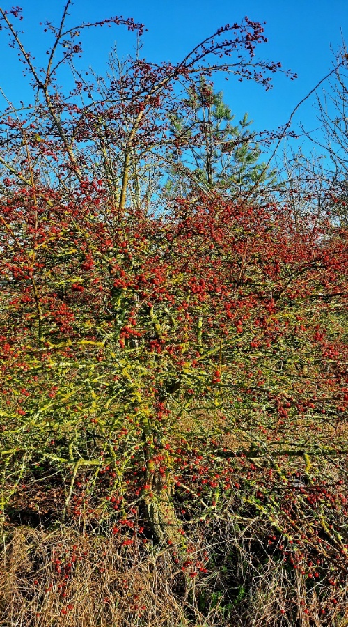 Whoops-I mean it as it was so similar in this area, open fields, meadow, heaving branches of fruit on Bushes & that beautiful mist that bounces the crunch of frost back at you as you walk topped with a blue sky above the mist, just magical.