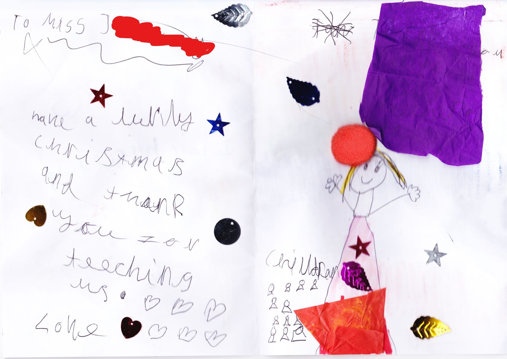 It was made by a 6 year old girl in her class and apparently the parents said she had spent some time making it the previous evening. My daughter said she nearly cried when she saw it. Teaching does have its rewards.