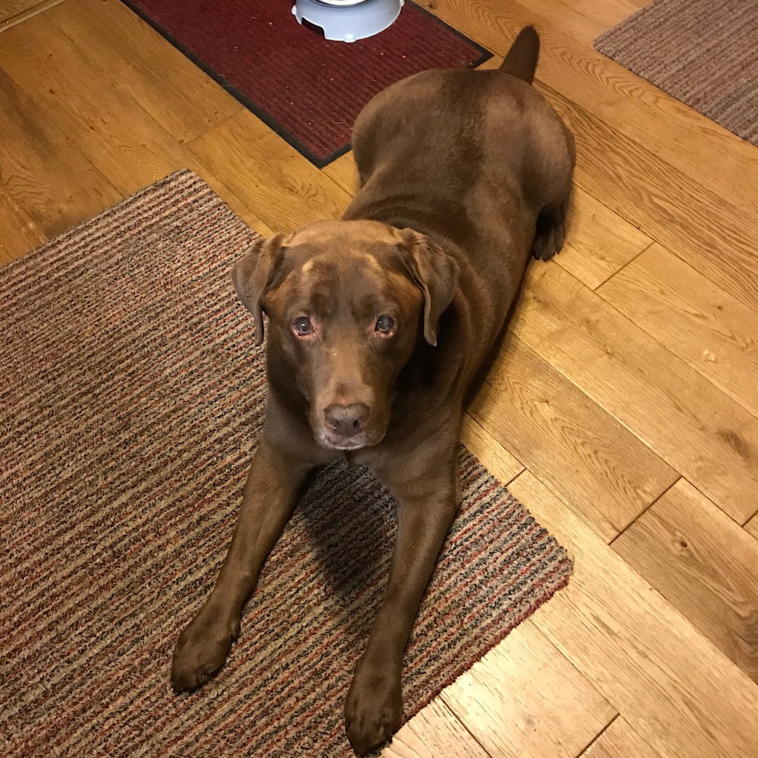 I spoke too soon, telepathy failed. He was up shortly after, demanding attention🙄 He got more than he bargained for though, we are fending off that perennial Labrador favourite GlugLug/FlappyTab, so he was pinned down, an unction poured in the offending orifice, then it was run for cover to avoid the results!😂 Eyeballs sorted as well, (seriously high maintenance model this one nowadays) and he’s out for a stroll with his Dad now.
