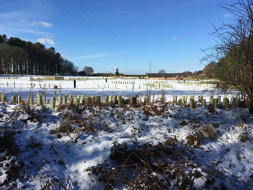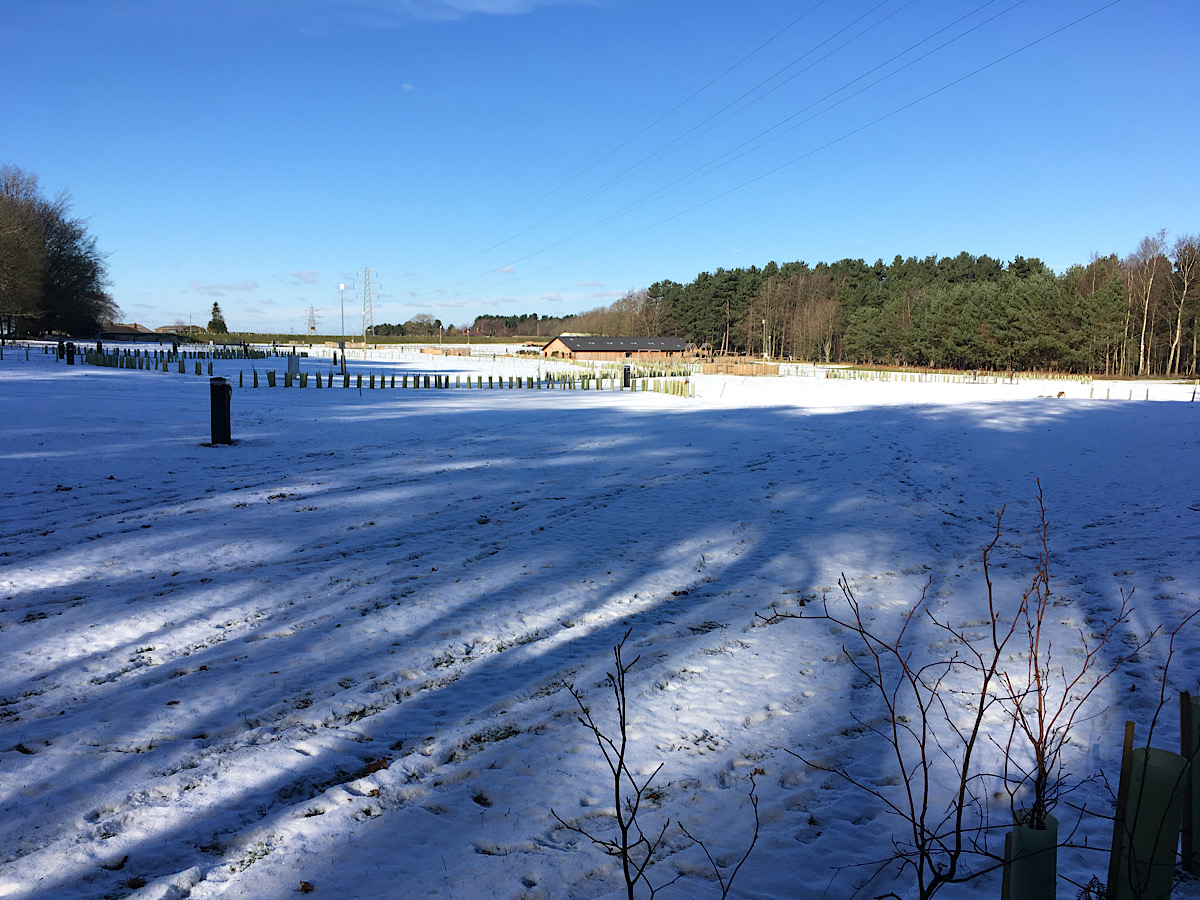 Only minus 8.4 here last night. However, a lovely winters day with temps around freezing for our walk. Decided to go to Sherwood Pines, which is forestry commission. The message must be getting through about staying local as there was hardly anyone there. Previously it has been fairly busy. Everything must have really cooled down last night, as it felt a lot colder walking than yesterday, despite the days being similar. We passed the new CCC site which looked rather desolate in its covering of snow.