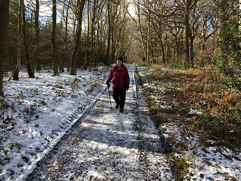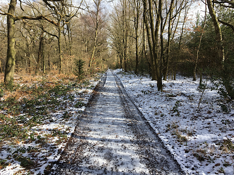 Beautiful if cold day here, much less windy than recent days. After the fish man called we decided on a walk in the local forest. Our 4 mile circuit was a lot less muddy than of late, all except south facing slopes being rock hard. The pictures are on the mile or so straight track that runs through Sherwood from Centre Tree to the Major Oak. It still has much off its tarmac surface, put down in WW2, underneath the leaf mould. The forest was used extensively for munitions storage. The surface has deteriorated a lot in the forty years we have lived here, but still provides a less muddy walk than many of the newer paths, when the weather isn’t as cold as today.