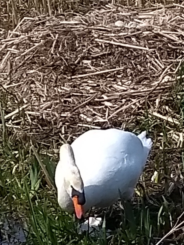 There were rather too many numpties there this morning so after Mrs WN had completed her masterpiece we left and found a nice isolated, sort of, walk instead. Came across a pair of Mute Swans and their nest which we could see into as Mrs was off the nest. 7 beautiful but large eggs. we thought "Ow, that must have hurt". Have to get the photo transferred from the phone and see if it's any good as we didn't want to get too close. If it is I'll post it later.