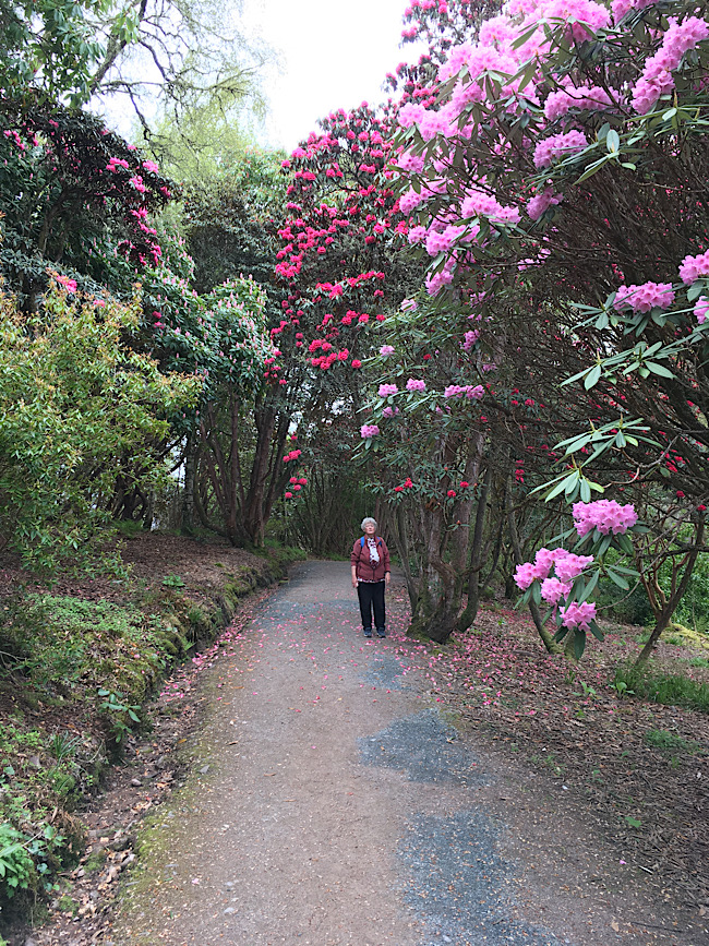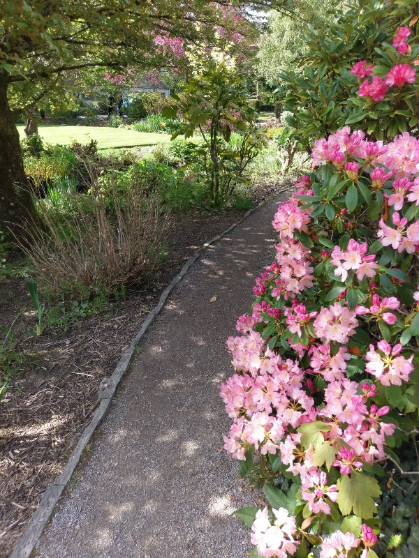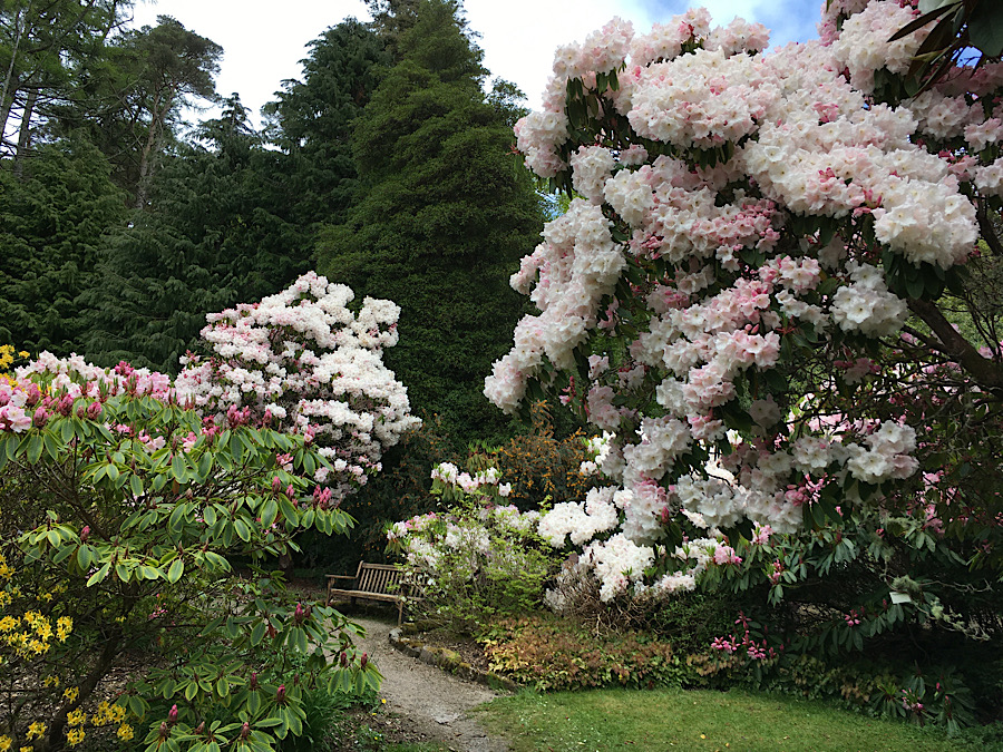Although it was its location that brought us here, to visit the gardens. However,I didn’t think it was going to be possible as the Web site said it was only open at the back end of the week, which was not the case when I checked a bit back. Fortunately although the visitors centre, shop etc are closed, the gardeners were working and access was allowed, although some paths were fenced off for maintenance. A gardener told us they currently haven’t enough people to open fully every day, although should be again in June. It was well worth the visit the Rhododendrons were large and spectacular. For anyone passing through rather than stopping at the site, there is plenty of dedicated MH parking.