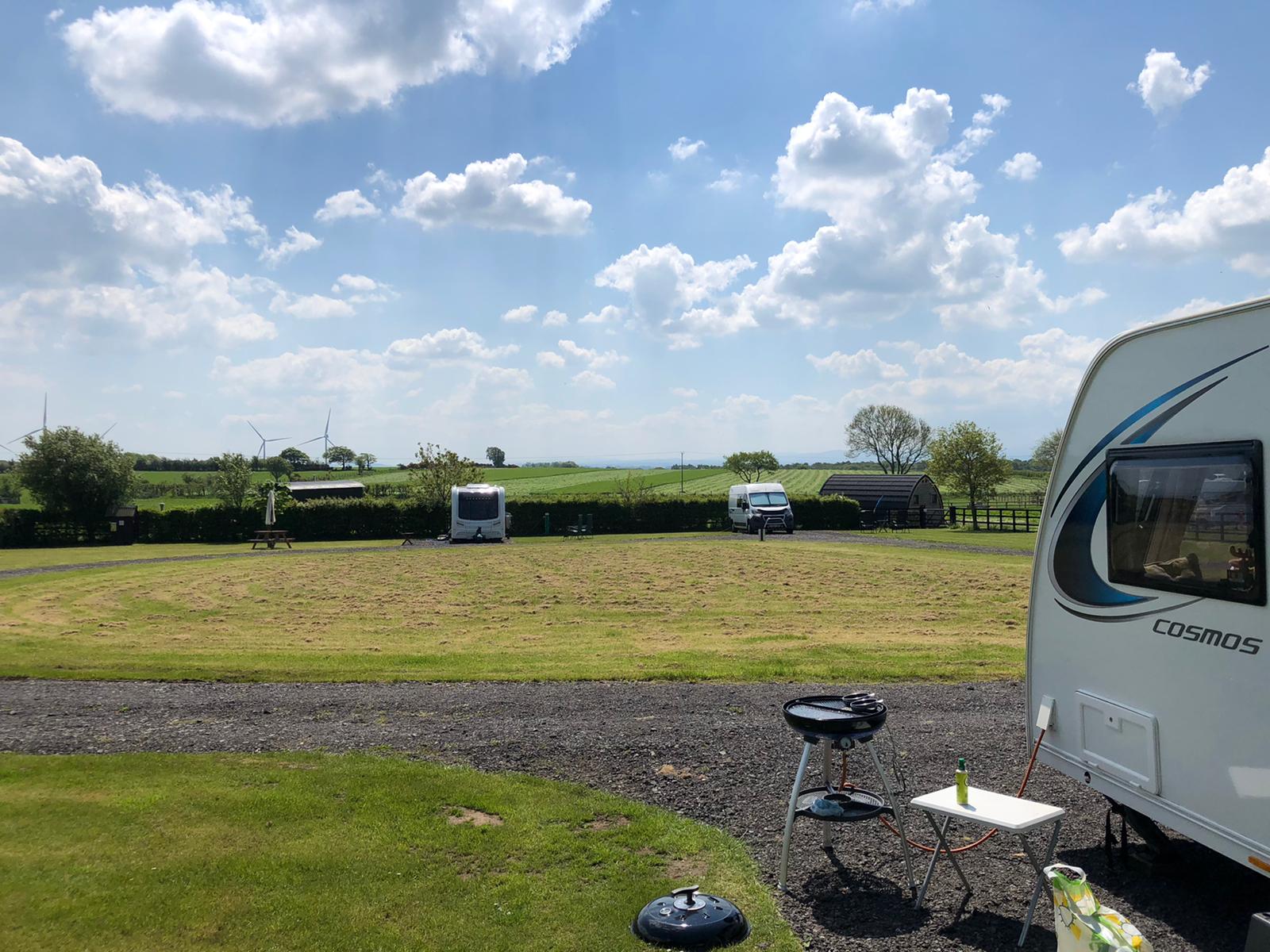 We are just back after a great 4 night stay at Low Moor Head Farm CL near Carlisle great site a bit more expensive than most CLs but worth the money in our opinion the owners are great and really look after t he place well you even get fresh eggs from the farm delivered to you every morning. Managed a visit to Keswick, Aircraft museum and a Roman fort as well as a bit of cycling and a lot of relaxing. Weather was great apart from Friday which was a bit rainy. Took longer than usual getting home today as traffic was quite bad around Glasgow then we had an incident about 20 miles from home SWMBO said she could hear a banging noise coming from the back of the car sure enough every time we hit a dip in the road there was a loud bang so pulled in ASAP and discovers the jockey wheel on the van had come loose it wasn’t actually on the ground but had dropped so was obviously clattering the road every time we hit a dip or a pot hole in 31 years caravanning that has never happened to us not sure how it came loose it was tightened up fully before we left the site anyway luckily no damage done. Still warm here at home so BBQ tonight I think. Home until Friday then away for weekend just to one of our local sites TG the schools down here are off today and were off on Friday so our area must get the bank holiday